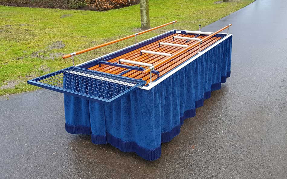 Het bloemenrek is een los rek dat eenvoudig aan de twee kopzijden van de Baarwagen-73 worden gehaakt.