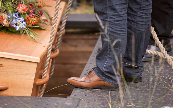 Om de kist – in de groeve – te laten afdalen wordt meestal een begraaftoestel gebruikt, soms geeft men om bijzondere redenen de voorkeur aan daaltouwen.