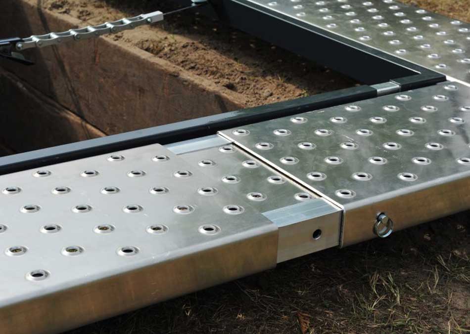 De lichtgewicht looproosters zijn ergonomisch en eenvoudig met de hand te plaatsen en verwijderen. In vergelijk met houten plankdelen die glad kunnen worden, splijten, kromtrekken, zwaarder zijn en aanzienlijk minder makkelijk handelbaar, zijn aluminium looproosters een aanzienlijke verbetering.