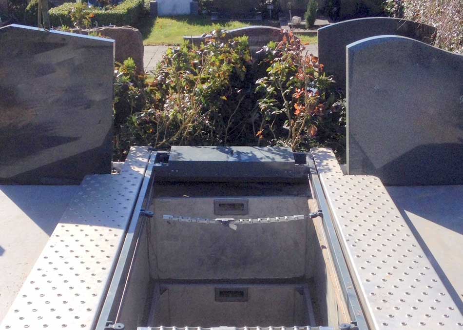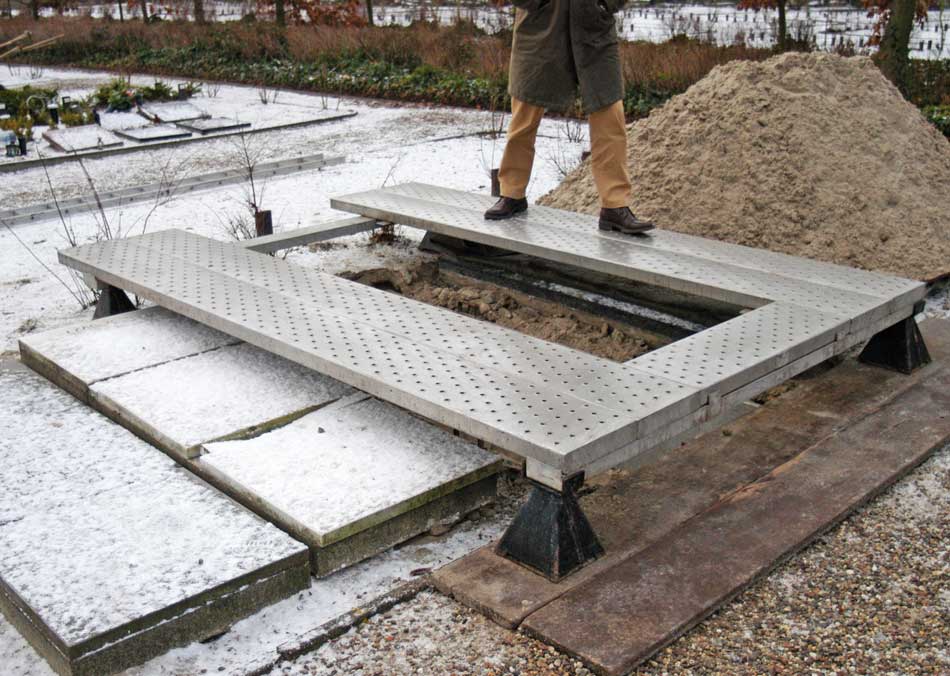 Om een begrafenis veilig te laten verlopen en de arbeidsomstandigheden voorafgaand aan en na de uitvaart goed te kunnen verrichten is het belangrijk looproosters als grafomranding toe te passen.