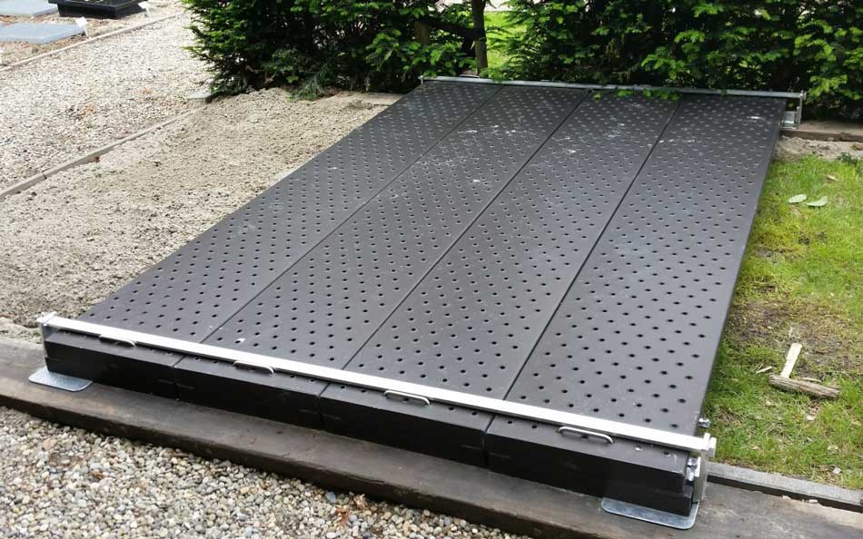 Qua kleur en afwerking zijn er diverse mogelijkheden. Wij anodiseren de aluminium grafafdekking (en looproosters) in verschillende kleuren. Deze oxide-laag is zeer slijt- en kleurvast.