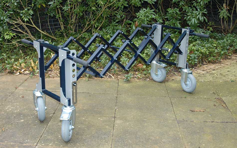 Doordat deze aluminium schaarwagen licht en invouwbaar is neemt deze weinig ruimte in en kan makkelijk in een personenauto meegenomen worden. Schaarwagens met kleine wielen zijn bedoeld om te gebruiken op effen ondergrond, niet op oneffen, zand- of grindpaden.