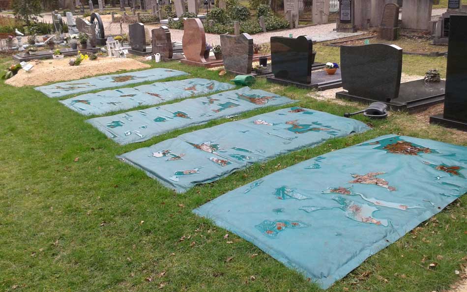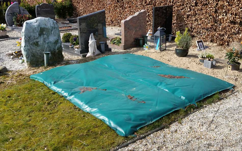 Ter voorkoming van het bevriezen van de grond waar graven gegraven moeten worden, zijn vorstafdekdekens de ideale oplossing. Als de zeer goed isolerende en waterdichte vorstafdekdekens vóór de vorstperiode zijn neergelegd, bevriest de grond niet en zijn branders en kango’s onnodig.